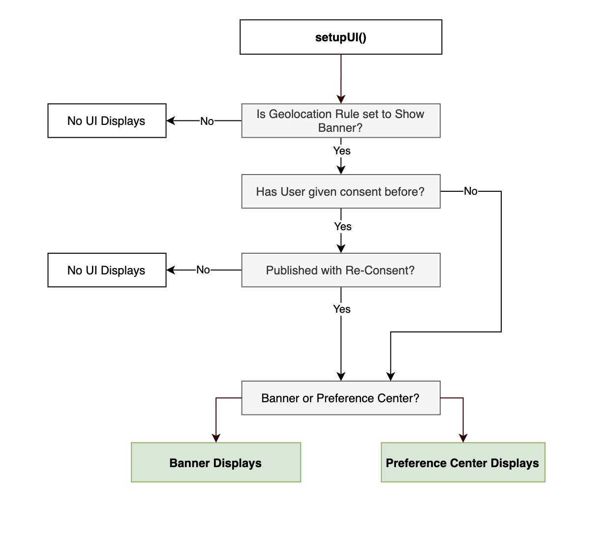When combined with a UIType, setupUI() automatically evaluates the shouldShowBanner logic to determine whether the specified UI should be shown to users.